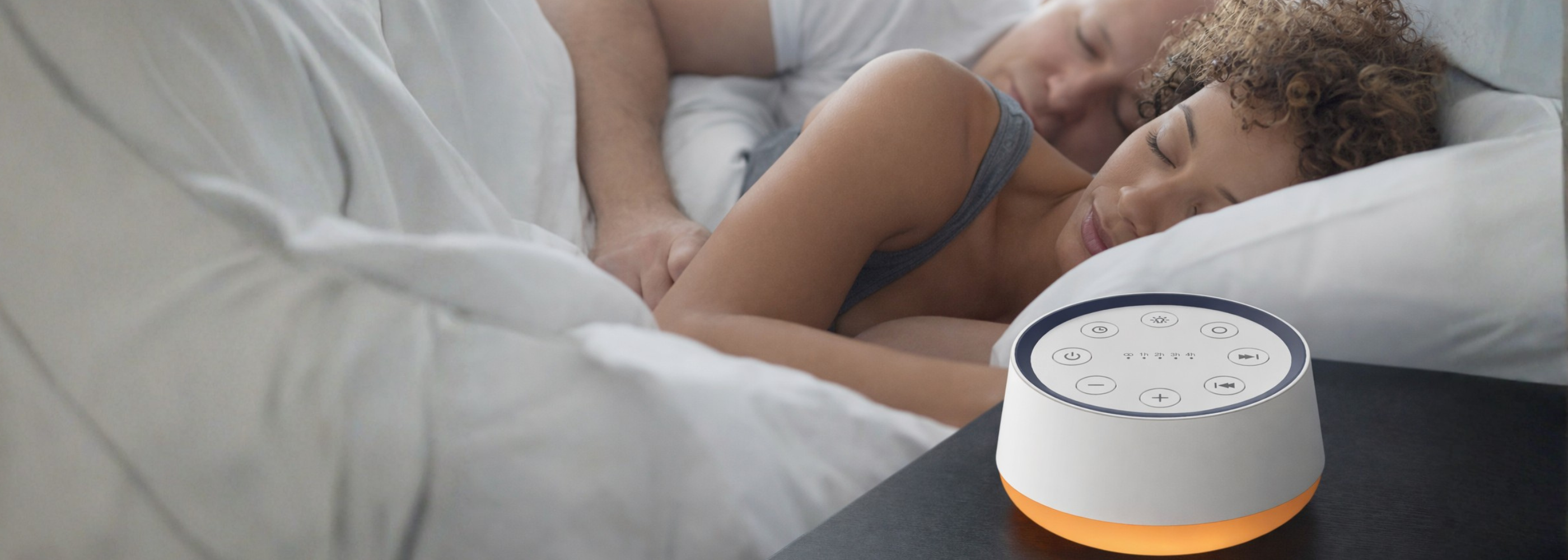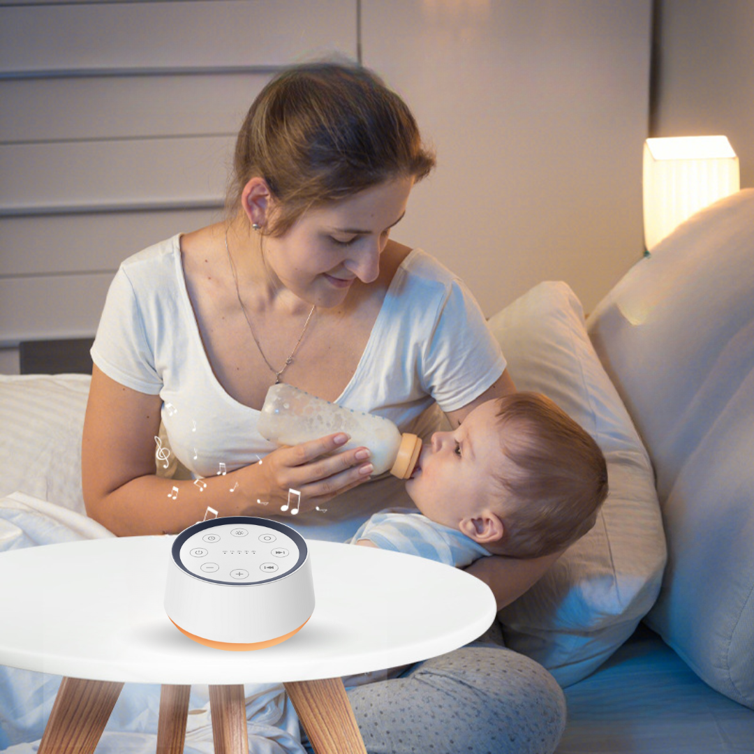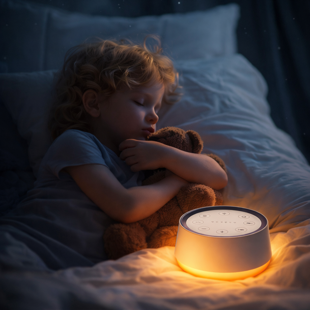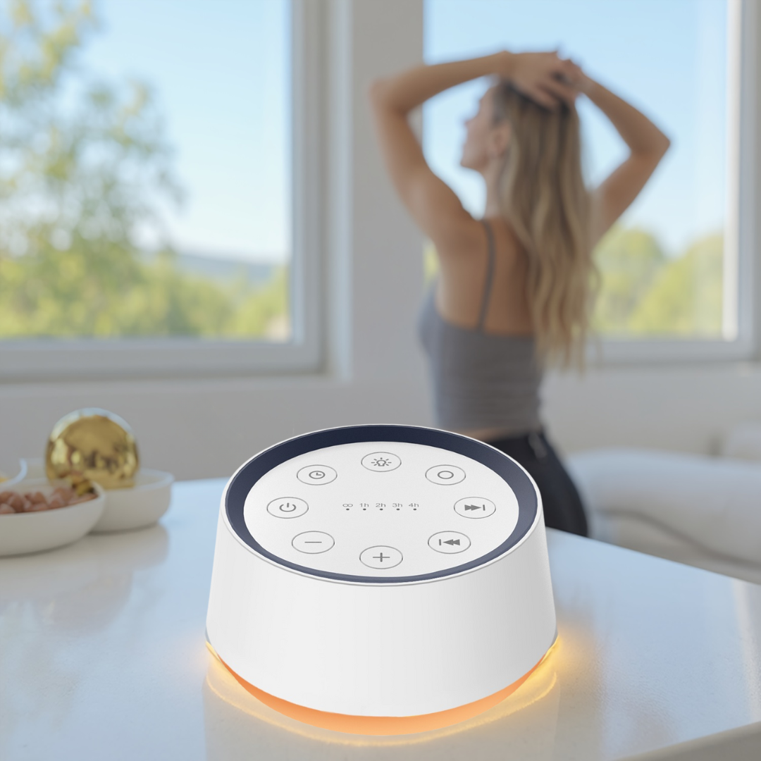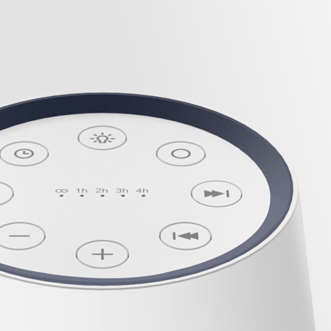 A smart sound device designed to support relaxation and sleep, featuring customizable ambient lighting, soothing sound options, and simple, intuitive controls for everyday use
