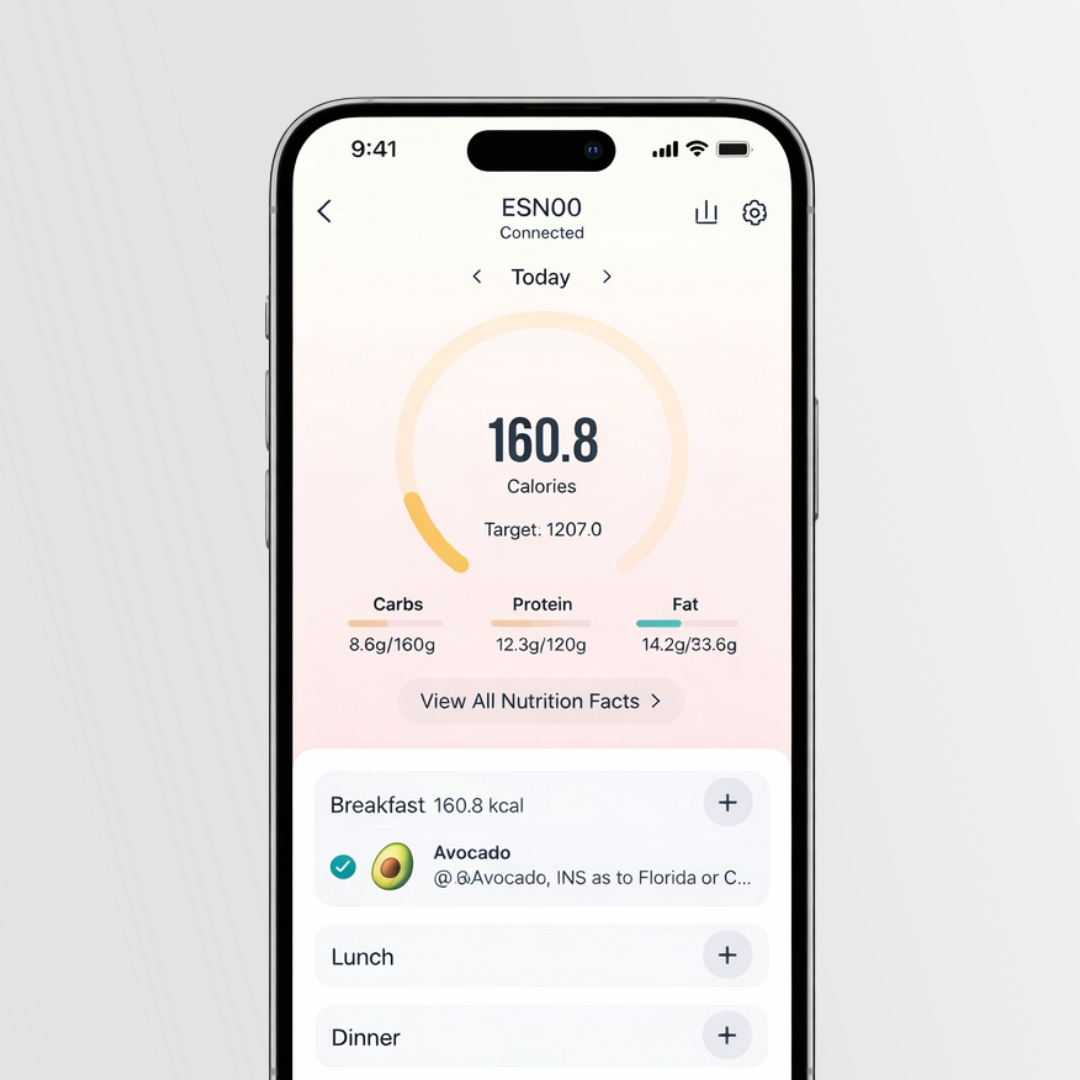 Stop guessing what’s on your plate. With precise weight measurement and instant nutrition analysis, you can see calories, macros, and up to 19 key nutrients in seconds. Every meal becomes a clear, informed choice.